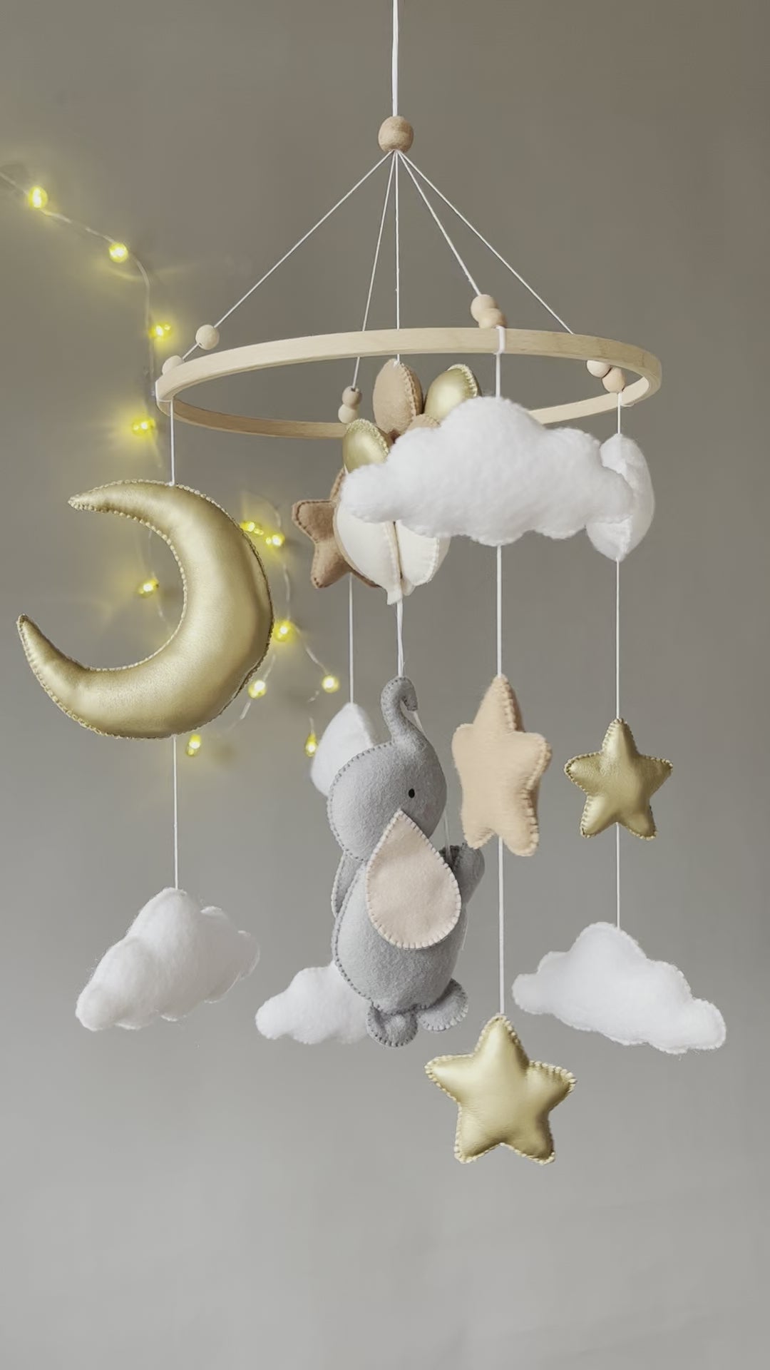 Baby mobile with elephant, moon, clouds and stars - Minidreams Decor