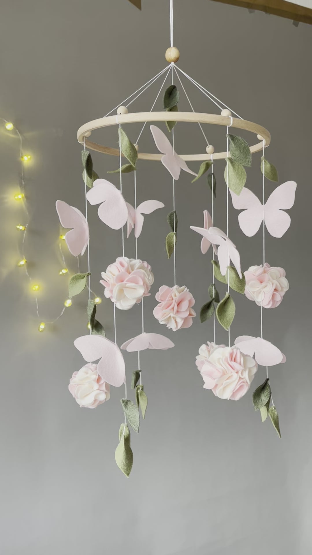 Floral mobile with flower, butterfly and leaves - Minidreams Decor