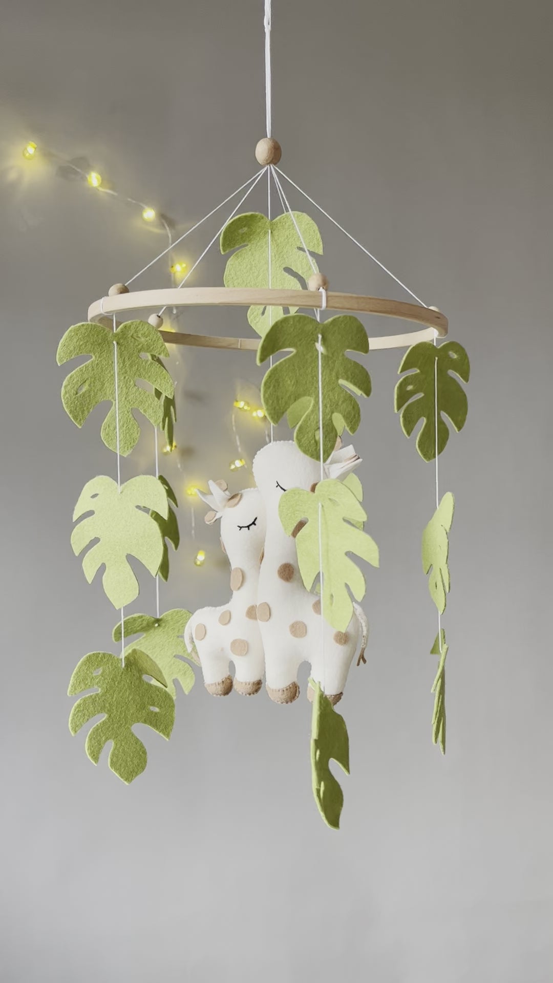 Safari mobile with Cute giraffe and leaves - Minidreams Decor